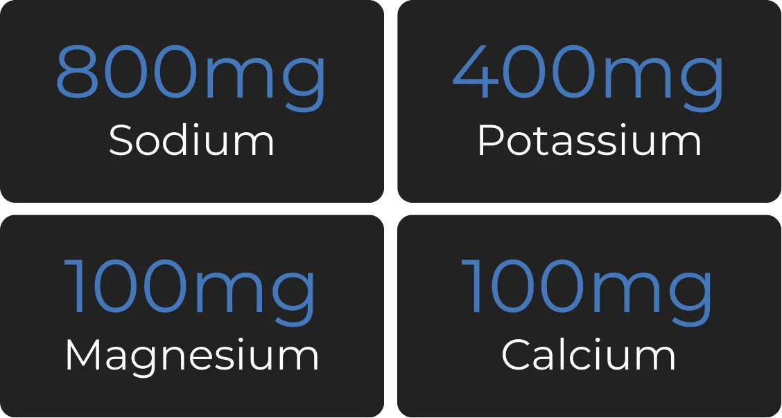 Purelyte is formulated to meet or exceed the typical electrolyte losses found in one litre of sweat, across sodium, potassium, magnesium and calcium — supporting effective hydration when sweat loss is meaningful.